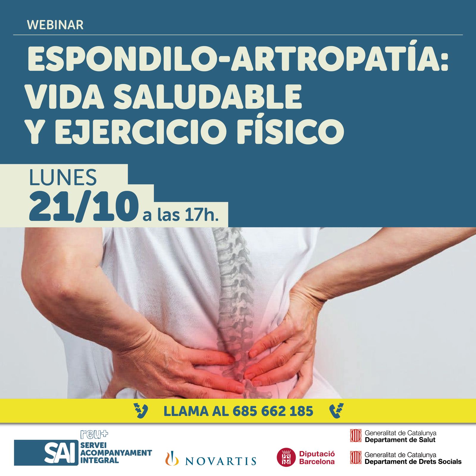 En aquest webinar explicarem què és la Espondilo-artropatia axial, què passa quan ens diagnostiquen aquesta malaltia, i per què és important conèixer millor la malaltia amb què convius, així com quines són les eines que necessites per tenir un rol més actiu en el seu maneig: la vida saludable i l’exercici físic especialment.