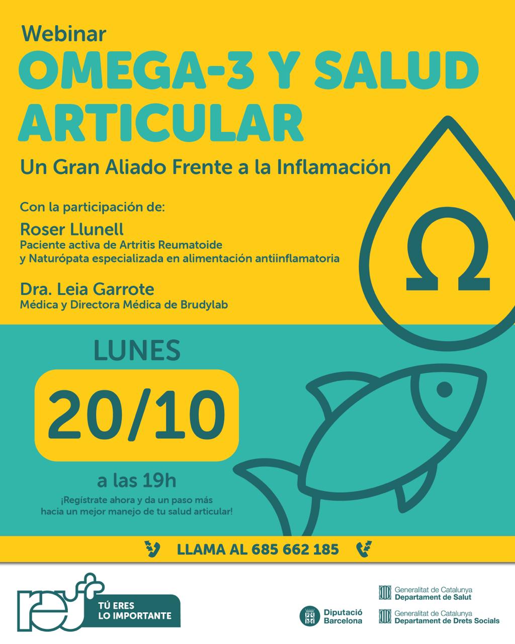 • Dra. Leia Garrote: Mèdica i Directora Mèdica de Brudylab. La Dra. Garrote ens aportarà l’evidència científica, desgranant el mecanisme d’acció de l’Omega-3 i com triar el suplement més adequat per maximitzar-ne els beneficis antiinflamatoris.